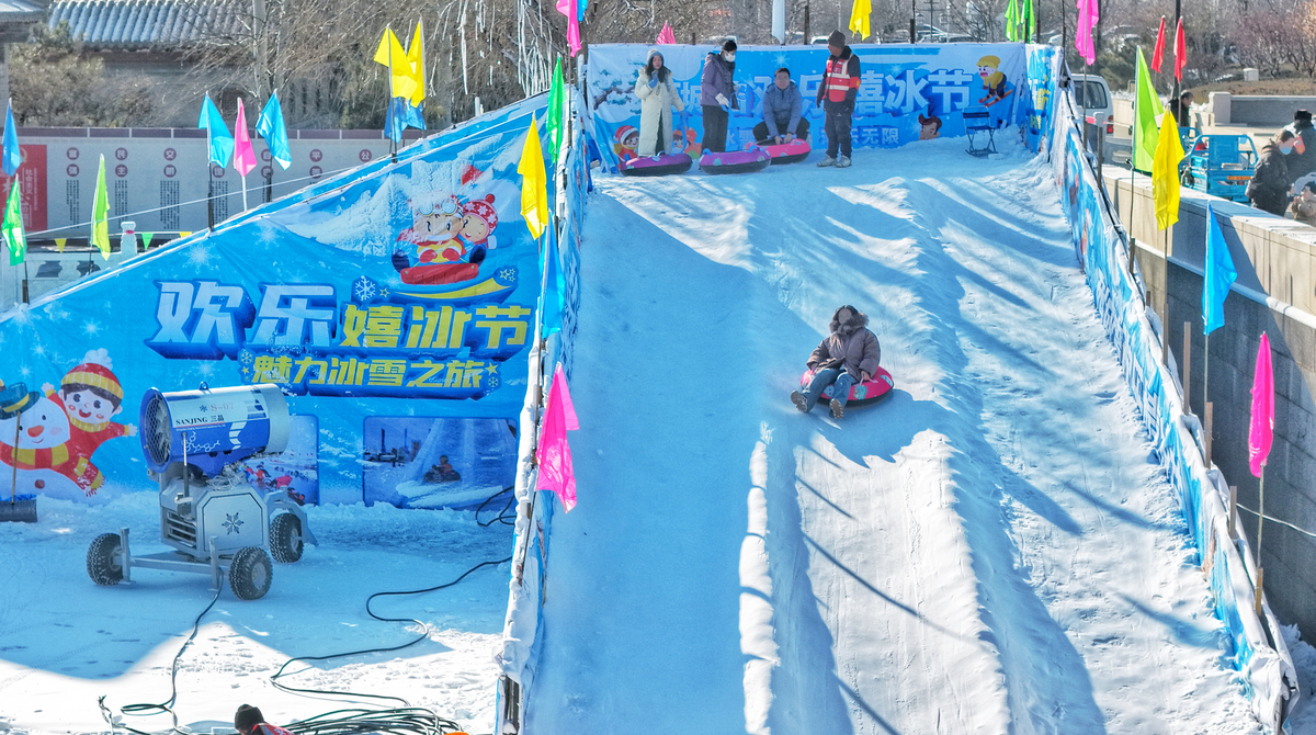 众多市民游客在西城墙护城河...