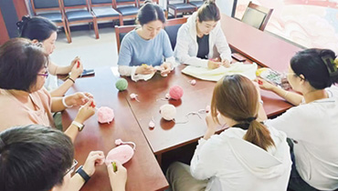 活动现场,社区活动室的长桌上铺满各色毛线团与钩针,居民们早早到场等候。体验环节一启动,居民们立刻围拢到钩织爱好者身边。爱好者们从最基础的锁针、短针教起,耐心纠正新手的小问题。等大家上手后,便带领大家做七夕专属作品。有人跟着勾鹊桥挂饰,细线绕着钩针转几圈,慢慢转出弯弯的桥拱;有人偏爱“相思豆”,红色毛线在指尖绕出圆润的豆子形状,还特意加了小段金线当装饰;还有家长带着孩子试做牛郎织女玩偶,用各色毛线织出草帽、裙摆等。