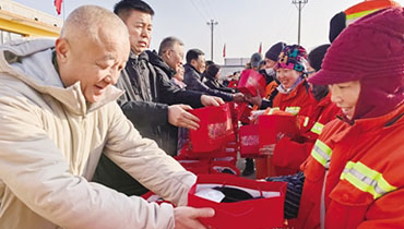 昨日,平城区环卫服务中心机扫三公司院内暖意融融,平城区人大常委会的工作人员将一箱箱厚实的棉手套和保暖耳罩整齐码放,为坚守一线的2733名环卫工人送上冬日里的贴心关怀。