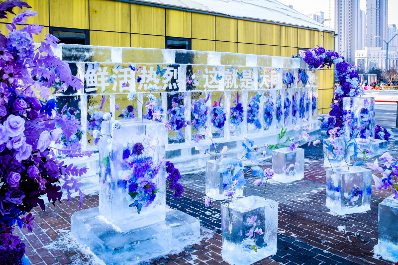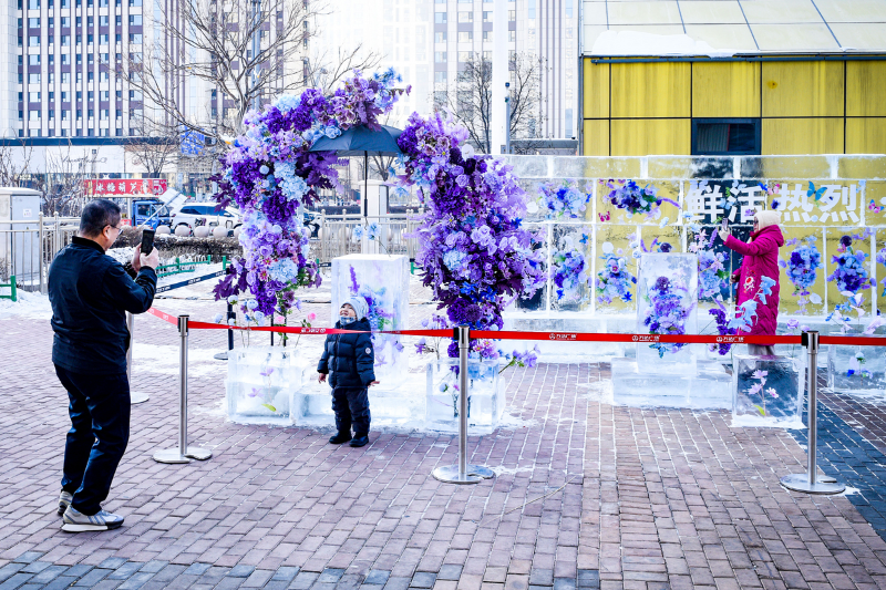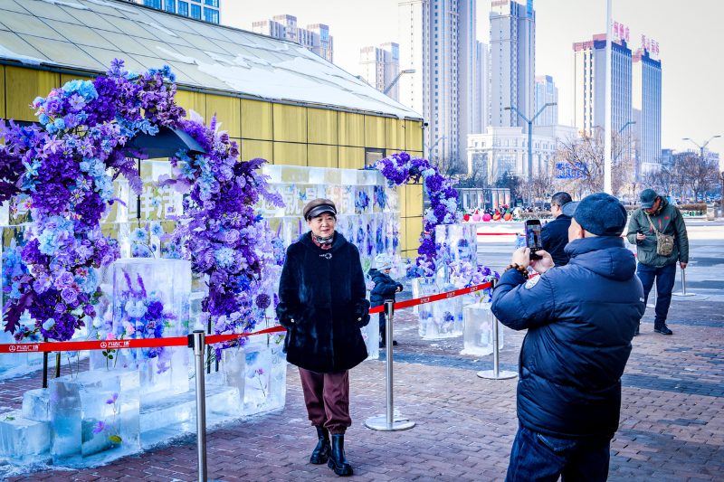 日前,平城区万达广场门前的冰封玫瑰2.0正式上线,数十组紫色冰封玫瑰景观错落排布,玫瑰与冰雕巧妙融合,吸引众多市民前来打卡,给冬日大同带来无限浪漫。