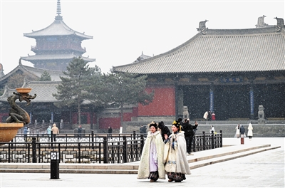 1月25日下午,我市迎来一场小雪。洁白的雪花轻轻飘落,为大同古城披上了一层静谧的银装。许多市民与游客漫步街头巷尾,欣赏雪景、拍照留念,沉浸在这宁静而美好的冬日时光里。