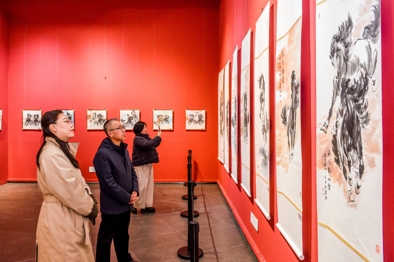 展览吸引众多市民与美术爱好者前来观赏,大家在笔墨中感受马的精神力量,沉浸式体悟艺术的无穷魅力。