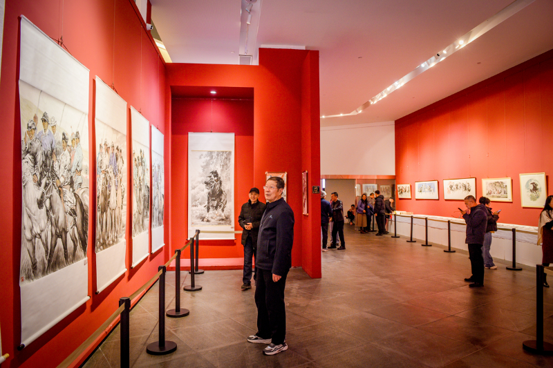 走进展厅,一幅幅作品以线立骨、以墨赋韵,通过骏马与人物、山水的结合,让传统画马题材绽放当代新意。
