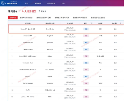 近日,中国平安金融大模型PingAnGPT-Qwen3-32B 在行业权威大模型评测体系CNFinBench大语言模型公开榜单上综合排名第一。本次参评模型阵容强大、竞争激烈,涵盖DeepSeek-R1(671B)、Qwen3-235B-A22B、Kimi-K2(1000B)等开源大模型,以及 GPT-4o、Claude-Sonnet 4、Doubao-1.5-pro 等领先的闭源商业模型,代表当前行业最高水平。此次评测登顶也标志着平安在金融大模型领域的技术能力已达到行业先进水平。