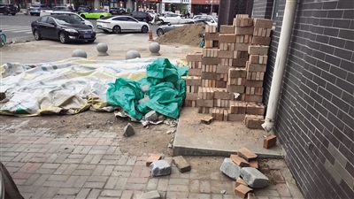 接到反映后记者赶往现场,看到该处环境问题确实突出,便道上脏乱情况明显。两个方形的木质花池早已破损不堪,池内没有栽种任何花草绿植,都是垃圾。周边还有好几堆沙土、砖块,以及生活垃圾和杂物,占据了大片公共区域,过往行人只能绕道。