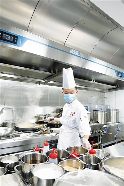 秋日的一个傍晚,记者再次来到瑞丰楼酒店。行政总厨昝伟忠向记者介绍说,瑞丰楼的菜品是“红旗”旗下所有饭店的集大成者。酒店一楼专门开设了砂锅居,主要经营砂锅菜和老大同风味小吃,服务于外地游客。“品质虽贵必不敢减食材,烹制虽繁必不敢减人工”,昝伟忠说,为了保障菜品质量,瑞丰楼及“红旗”旗下所有饭店在日常经营中坚守“十不用”:一是精选麻地沟羊,速生不用; 二是家禽务必新鲜,冻品不用;三是海鲜河鲜水产,不鲜不用;四是核心产品日清,隔夜不用;五是饮品坚持现榨,勾兑不用;六是手工制作点心,机器不用;七是菜品突出本味,香精不用;八是严选品质调料,小牌不用;九是拒绝转基因油,杂牌不用;十是食材确保安全,无证不用。