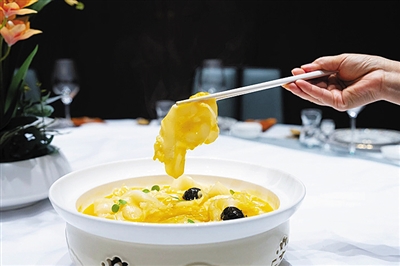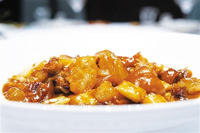 在采访中,昝伟忠向记者推荐了3道瑞丰楼的招牌粤菜:黑蒜烧花胶、招牌乳鸽腿、葱烧猪手。烹制粤菜的是来自广州的陈大师。陈大师曾在香港的多家酒店担任主厨。黑蒜烧花胶,选用优质厚花胶,以浓醇鸡汤慢火烧制,让花胶充分吸收鸡汤的鲜美,释放出双重浓厚胶质。当琥珀色的汤汁漫过温润如玉的花胶,秘制发酵的黑蒜悄然登场——来自云南的黑色珍珠,以其特有的甘甜醇香中和了胶质的厚重,巧妙地化解油腻。筷子轻挑,花胶呈现半透明的胶冻质感,入口先是鸡汤的鲜香,继而是黑蒜的绵密甘甜,层层递进,软糯丝滑,浓香味醇,每一口都是对味蕾的极致犒赏。
