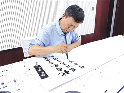 六十余载笔耕不辍,他用近20万张习字草纸、500多支写秃的毛笔,书写对艺术的虔诚与坚守;以3万幅公益作品、数十年如一日的基层奔波,诠释对人民的深情与担当。如今,年逾花甲,他依然每日临池不辍,奔走在公益一线,默默践行着“心正则笔正”的人生信念。