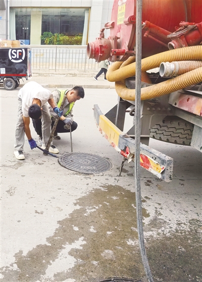 大同市口泉市政综合所接到反馈后,迅速组建专业清疏队伍,携带抽排设备、疏通工具火速赶赴现场,结合实际制定科学作业方案。作业过程中,党员干部带头疏通堵塞污水井,其他人员分工协作,同步对供暖井内倒灌污水进行抽排清理,并仔细检查供暖管道、阀门等设施受损情况。